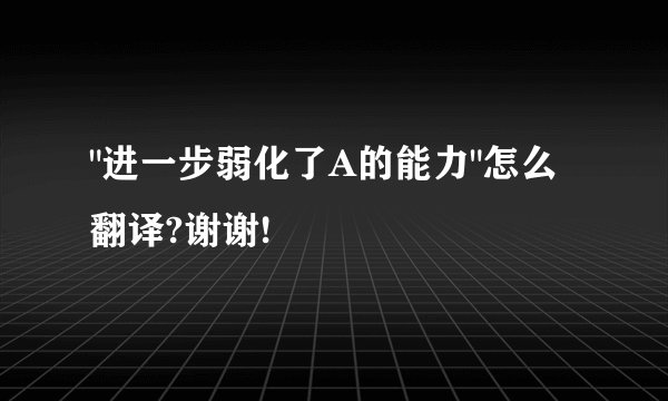 您的位置首页百科知识 "进一步弱化了A的能力"怎么翻译?谢谢! Simone 发布于 2026-03-06 08:19:15 862 阅读 "进一步弱化了A的能力"怎么翻译?谢谢!的有关信息介绍如下:你好,由于你这句话没有主语,并不知道动作的执行者是谁,因此应当把它处理成被动语态,即:The capability of A is further weakened. (直译是A的能力被进一步弱化了)实际交流中这两句就是最对等的表达。