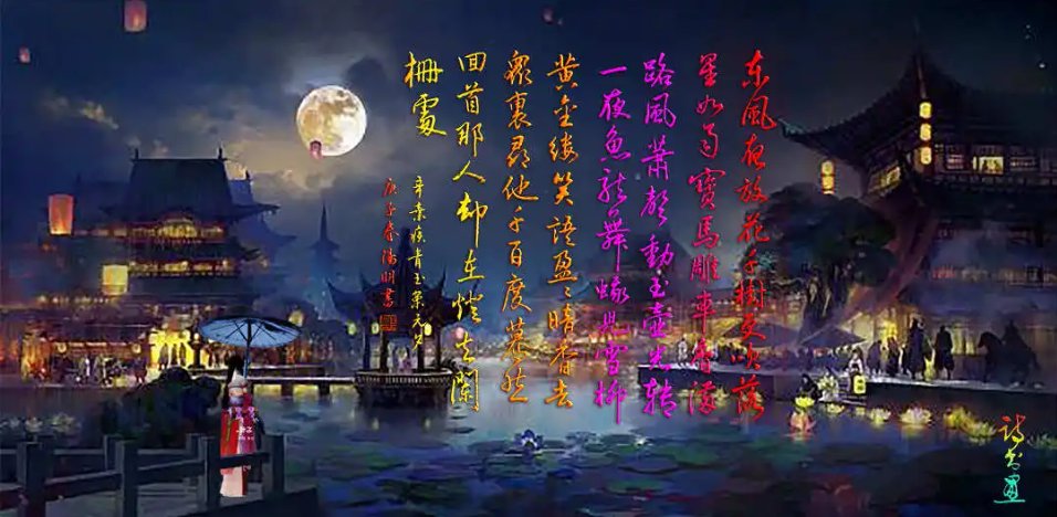 蛾儿雪柳黄金缕。笑语盈盈暗香去。众里寻他千百度。蓦然回首,那人却在,灯火阑珊处。